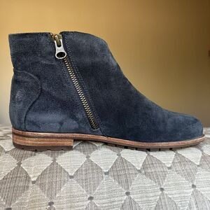 Kork-Ease Balsa Navy Gray Suede Leather Ankle Boots w/ Side Zipper Women’s 6