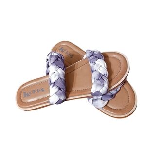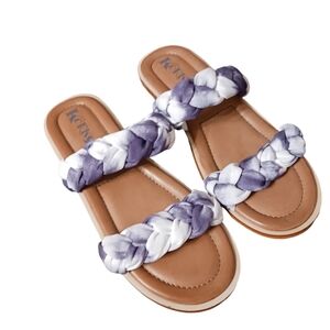 Kork-Ease Blue Tie Dyed Strap Slide Sandals KORKS Boho Comfy Knotted Boho Braid