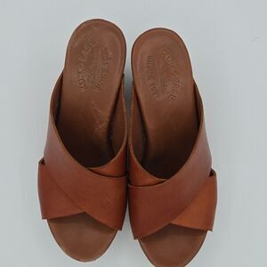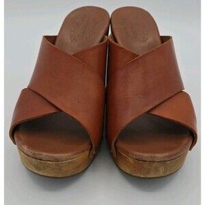 Kork-Ease Brown Leather Wood Mules with Cross-Over Design Size Womens 8 EUC