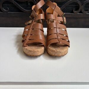 Kork-Ease Camille Ankle Strap Leather Platform Sandal Heel Size 6