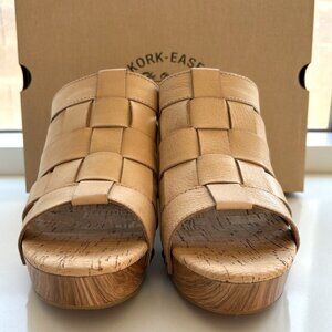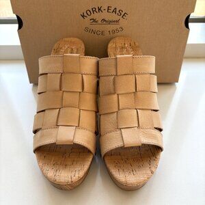 Kork-Ease Devan Sandals Woven Leather Platform Slip On Heels Natural Size 10 NEW