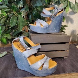 Enjoy the comfort of Kork-Ease leather cushioned wedges. Lightweight, comfortable, and beautiful blue color! I never wore them so they are in fantastic condition.