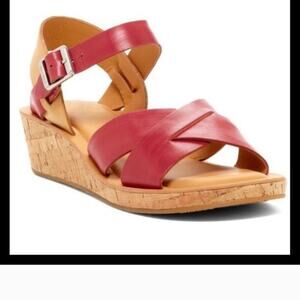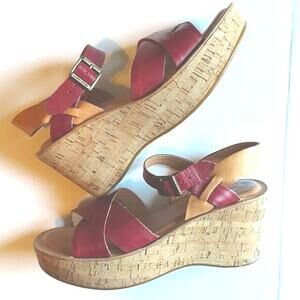 Kork-Ease NEW Myrna Red Tan Cork Platform Wedge Peep-Toe Leather Sandal 40.5