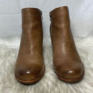 Kork-Ease Natalya Dark Tan Distressed Leather Side Zip Booties Sz 7.5