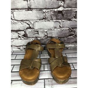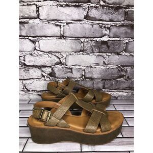 Kork-Ease Olive Green Leather Platform Wedge Ankle Strap Sandals Women Sz 7M US
