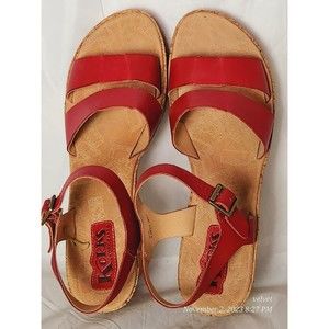 Kork-Ease Q20212 Red Tish Cork Platform Wedge Slingback Leather Sandals Sz 10