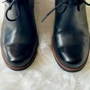 Korks by Kork-Ease Roana Lace up Chunky Heel Black Leather Two-Tone Ankle Boots Size 7.5