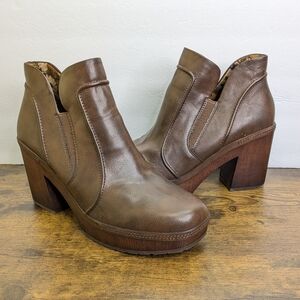 Kork-Ease Robin Clog Chunky Platform Ankle Bootie Sz 11 Brown Heel Boots