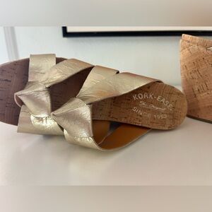 Kork-Ease Sammi Cork Wedge Light Gold Metallic Slide Sandal, Size 8