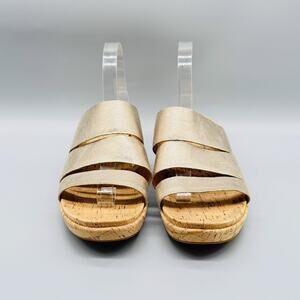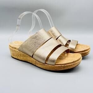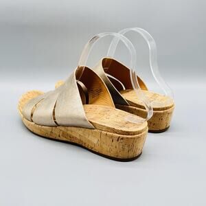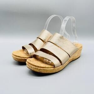 Kork-Ease Sandals Womens 10 Gold Metallic Leather Menzie Cork Wedge Comfort