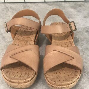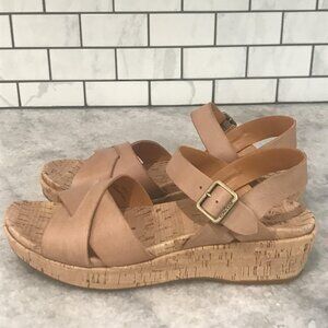 Kork-Ease Sandals Womens Size 9 Tan Leather Wedge Platform Ankle Strap K38106