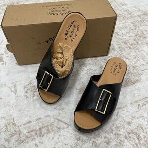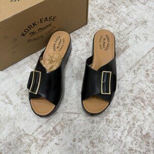 Kork-Ease Shoes Womens Size 8 Black York Platform Sandals Slide Wedge Buckle