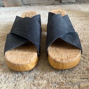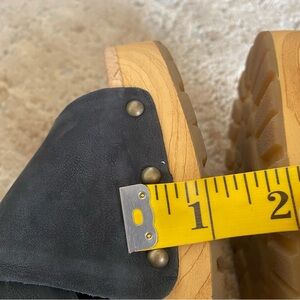 Reposhing these platform shoes I purchased from @brit_in_co. Love them, but I can't wear any type of heel anymore. They are very comfy for the right person. They go with anything! EUC - Kork-Ease Tatum faux Wooden Platform Lug Sole Sandals Open Toe Criss Cross Black: 10M