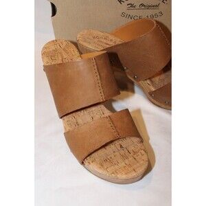 Kork-Ease Women Darra Sandals Platform Block Heel Black Wood EU 39 NIB BROWN