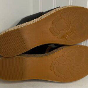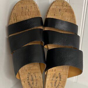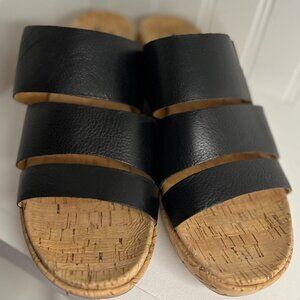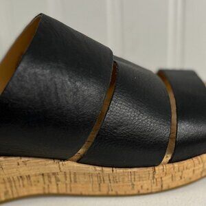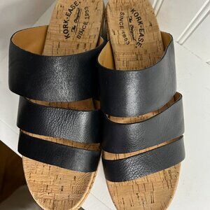 Kork-Ease Women's 10 M Menzie Platform Sandals Black Leather 3 Strap Wedge Shoes