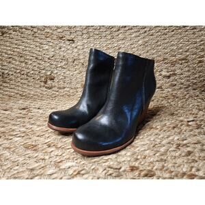 Kork-Ease Women's 6.5M Natalya Ankle Boots Black Leather Wedge Zip Booties