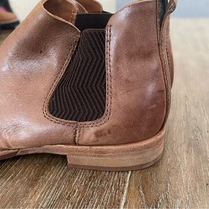 • Style Profile: ,Round toe, leather, slip on, low block heel, Flat boot, pull on, side elastics, fall, winter, low ankle profile, chocolate, brown, pull tab, rubber outer sole, cushioned