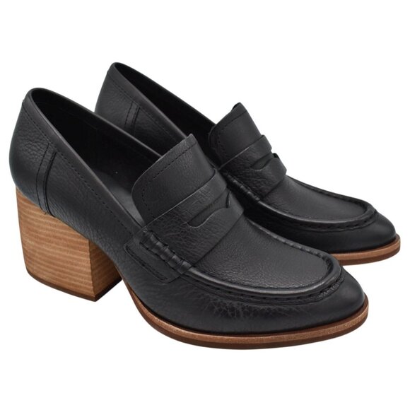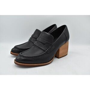 KorkEase Womens 8.5 Modeste Black Leather Stacked Heeled Penny Loafer Pump Shoes