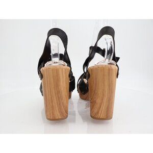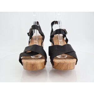 Kork-Ease Womens Drew Sandals Platform Block Heel Black Leather Slingback 9M
