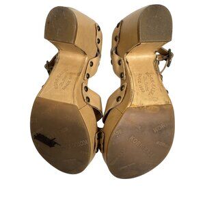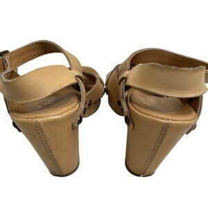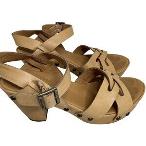Kork-Ease Womens Leather Strappy Sandals Size 7 Tan Wedge Heel & Buckle