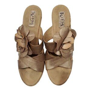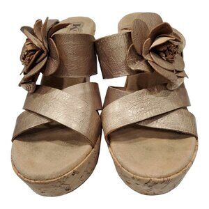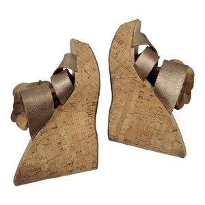 Kork-Ease Womens Rose Gold Leather Platform Wedge Sandals Sz 10/42 Flora…