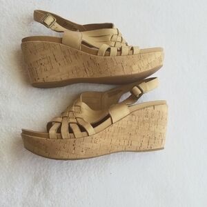 Kork-Ease women's tan leather woven front wedge sandals size 10M