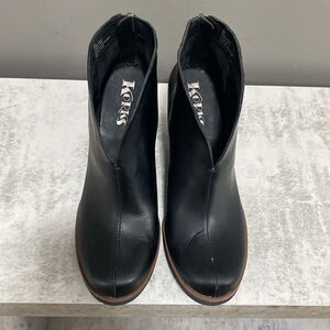 Kork-Ease Black Leather Ankle Booties Unique Charcoal Heels Size 8