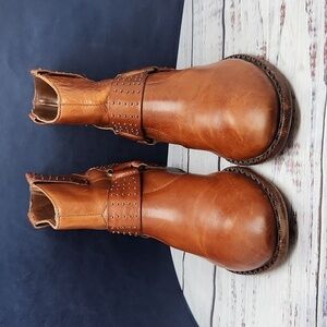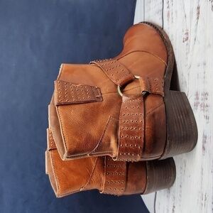 Kork-ease Katie Studded Leather Brown Ankle Boots Booties Western Moto Sz 7
