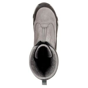 Korkers Women's Grey Northlake Zip Waterproof Comfort Boot Shoes Size 8 NWB. OmniTrax® Interchangeable Sole System for traction on the fly; easily change soles as conditions or terrains demand. Waterproof breathable bootie construction combined with waterproof leather keeps feet bone dry. Removable wool liner provides warmth & moisture wicking performance. Reinforced heel counter provides performance fit and stability. Shock-absorbing EVA midsole offers underfoot comfort and support. Removable wool liner and water resistant zipper for easy on & off. Comfort rated down to -20 Degrees Fahrenheit.