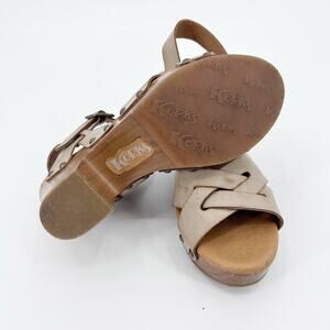 Korks Babette Platform Wedge Sandals Tan Leather Cross Strap Women’s Size 6M