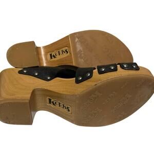 Korks Barango Wooden block heels Sandal Leather Cushioned Footbed Black Size 8