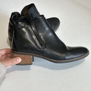 Korks Black Leather Chelsea Ankle Boots Womens 8 M Stacked Heel Classic Comfort