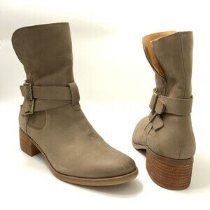 Korks Boots Women Size 9M Tan Double Harness Stacked Block Heel Comfort