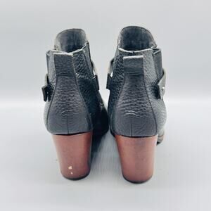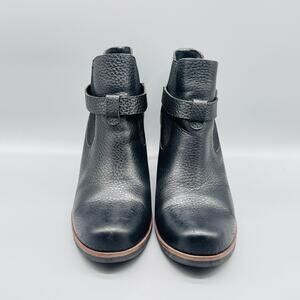 Korks Boots Womens 10 Black Pebbled Leather Ease Ankle Booties Strap Block Heel