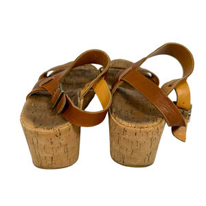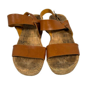 Korks By Kork Ease Platform Wedge Sandals Womens 9 Brown Slingback Leather