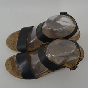 Korks By Kork-Ease Austin Black Leather Wedge Sandals Size 9