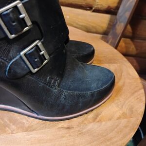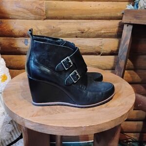 Korks By Kork-Ease Hanska Dark Brown Leather & Suede Wedge Bootie Size 8M