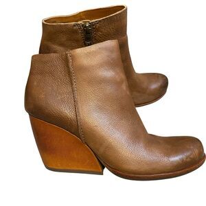 Korks Ease Wedge Ankle Booties Womens 8 EU 39 Brown Leather Boho Fairy Grunge. Excellent pre-owned condition.