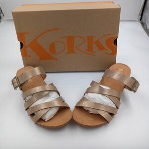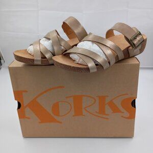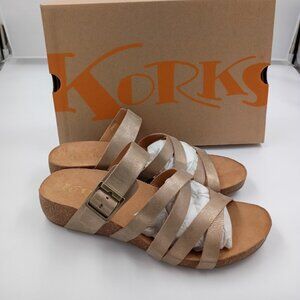 Korks Gold Aster Low Wedge Sandals, Women's Size 9
