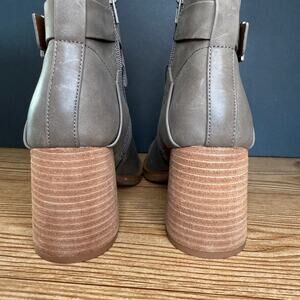 Korks Grey Wood Block Heel Ankle Booties Boot Sz 7 Gray Western Boho Shabby Chic