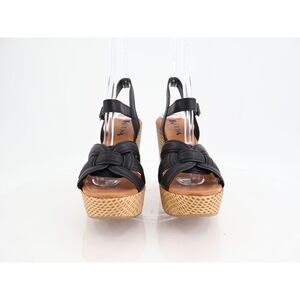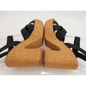 Korks Kork Ease Dee Sandals Women's 9 Black Faux Leather Platform Wedge