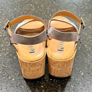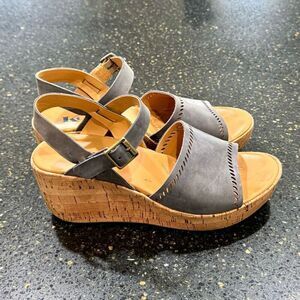 Korks Kork Ease Tone Quarter Strap Gray Leather Cork Wedge Sandals. Size 7M