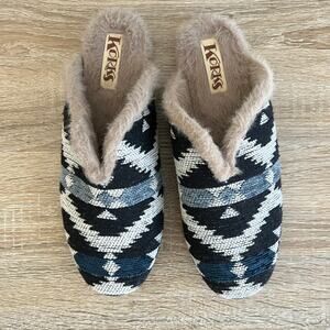 Korks Nile Slipper Mule Tapestry Faux Fur Blue 6M