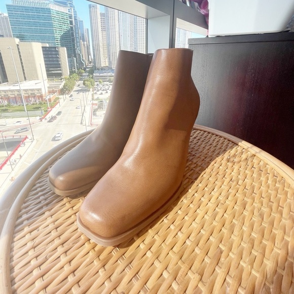NWOB-Korks Oliana Square Toe Wedge Heel Dark Tan Leather Ankle Boots