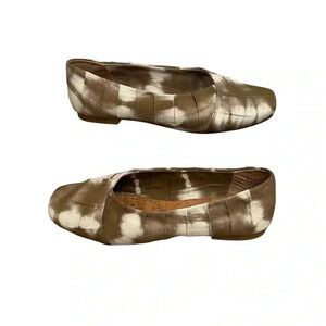 Korks Palmer Ballet Flat Square Toe Khaki and White Tie-Dye Shoe Womens size