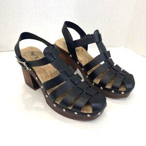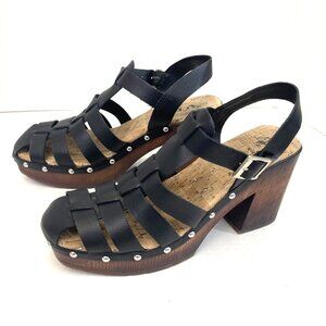 Korks Studded Wood Heel Sandals Womens 8M Black Platform Strappy Slingback Shoes