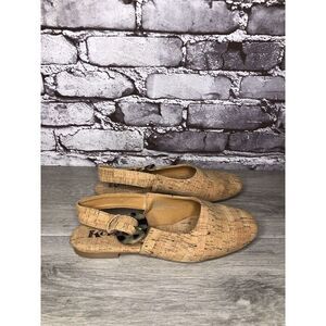 Korks Tan Cork Leather Casual Ankle Strap Mules Flats Women’s Sz 6.5M US/37EU