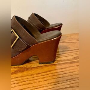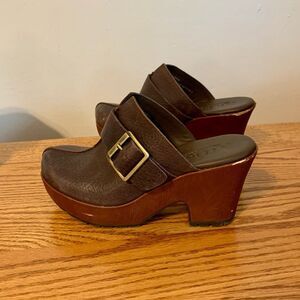 Korks Tan Leather Clogs Heel Platform Chunky Boho Buckle 6 Brown Fall Slide y2k
