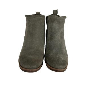 Korks Tea Boots Women's 8M Ease Green Suede Leather Stacked Heel Chelsea Ankle