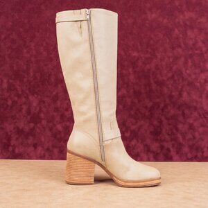Korks Wmn Karelyn Distress Cream Wide Calf Faux Leather Block Knee Boots 11